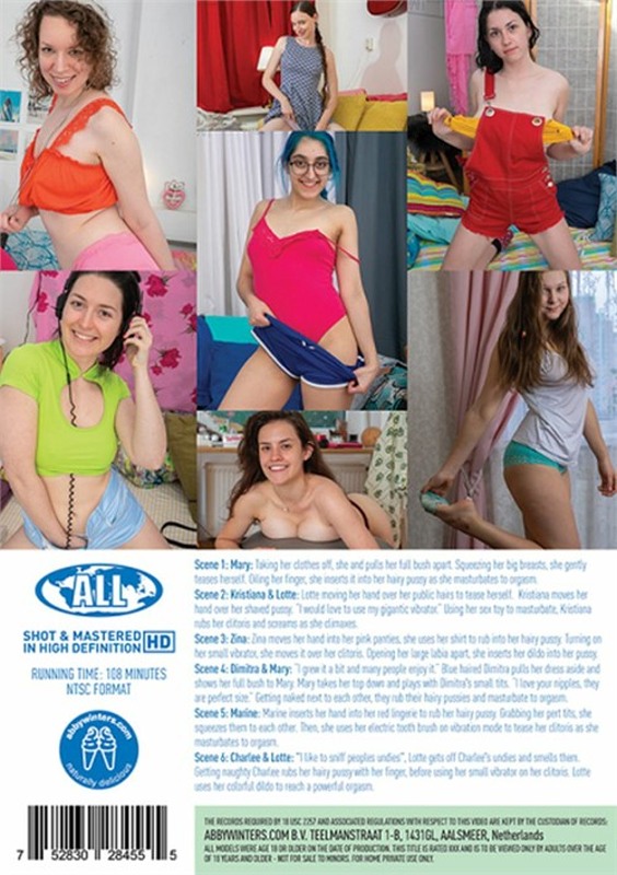 Mary: Taking her clothes off and pulls her full bush apart. Squeezing her big breasts, she gently teases herself. Oiling her finger, she inserts it into her hairy pussy as she masturbates to orgasm. Kristiana & Lotte: Lotte moving her hand over her pubic hair to tease herself. Kristiana moves her hand over her shaved pussy. "I would love to use my gigantic vibrator". Using her sex toy to masturbate, Kristiana rubs her clitoris and screams as she climaxes. Zina: Zina moves her hand into her pink panties, she uses her shirt to rub into her hairy pussy. Turning on her small vibrator, she moves it over her clitoris. Opening her large labia apart, she inserts her dildo into her pussy. Dimitra & Mary: "I grew it a bit and many people enjoy it." Blue haired Dimitra pulls her dress aside and shows her full bush to Mary. Mary takes her top down and plays with Dimitra's small tits. "I love your nipples, they are a perfect size." Getting naked next to each other, they rub their hairy pussies and masturbate to orgasm. Charlee & Lotte: "I like to sniff peoples undies". Lotte gets off Charlee's undies and smells them. Getting naughty Charlee rubs her hairy pussy with her finger, before using her small vibrator on her clitoris. Lotte uses her colorful dildo to reach a powerful orgasm.